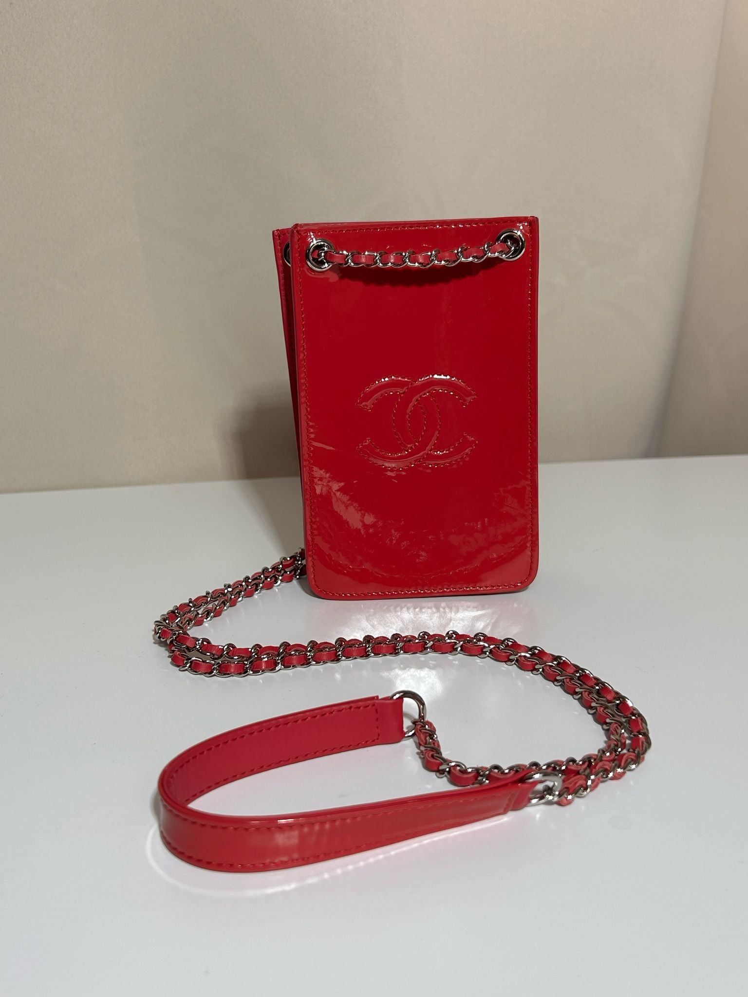 Petit Sac Bandoulière Chanel CC - Cuir Vernis Rouge - Authentifié